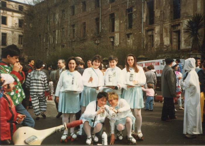Jauregi: Egun hartan, hurrengo inauterietan elkarrekin mozorrotuta ateratzeko proposamena egin zuten beste kuadrillakoek, eta hala sortu genuen konpartsa 1988ko inauterietan, 19 urterekin.