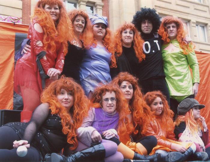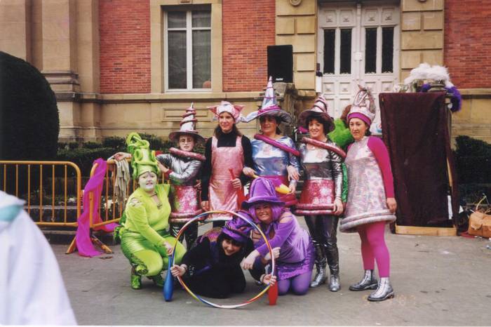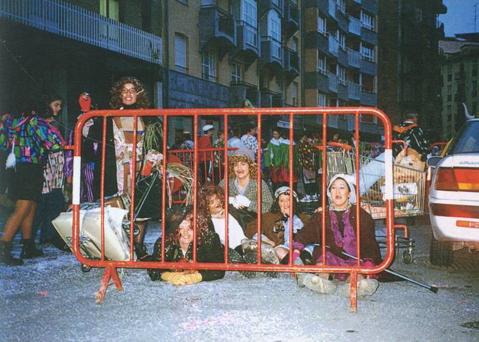 Jauregi: Beno, batzuk txerrikeriak egin nahi izaten genituen, eta beste batzuk soinekoak eta takoidun zapatak jantzita atera nahi izaten zuten. Hori izaten zen eztabaida, eta beti guk galtzen genuen. Urte batean, behartsuez mozorrotuta atera ginen, eta ikaragarri gozatu genuen. Inauteri guztietan lurretik ibili ginen [Barreak].