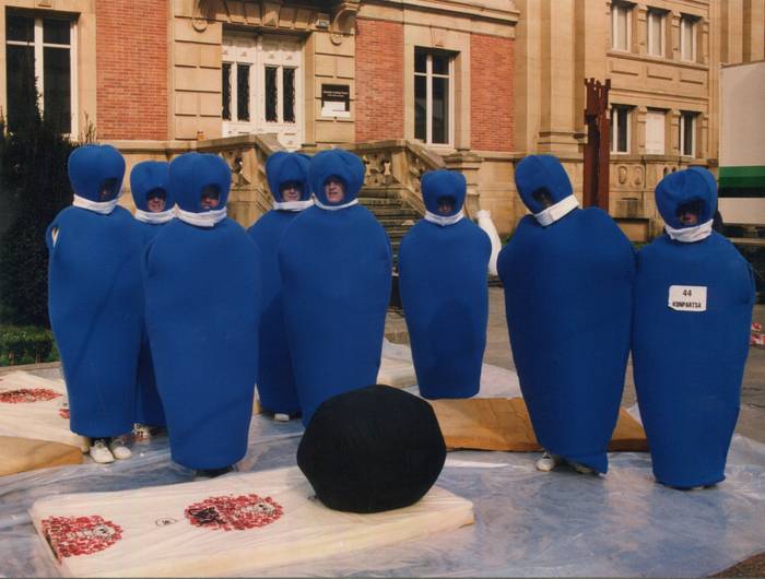 Larrarte: Sei bat lagun elkartzen ginen, eta bakoitzak bere ideiak eramaten zituen bilerara. Bertan erabakitzen genuen mozorroa, eta gero, parodia eta jantziak nola egin pentsatzen eta erabakitzen hasten ginen. Ideia gutxiko pertsonak ginen, eta beraz, erraza izaten zen erabakiak hartzea.