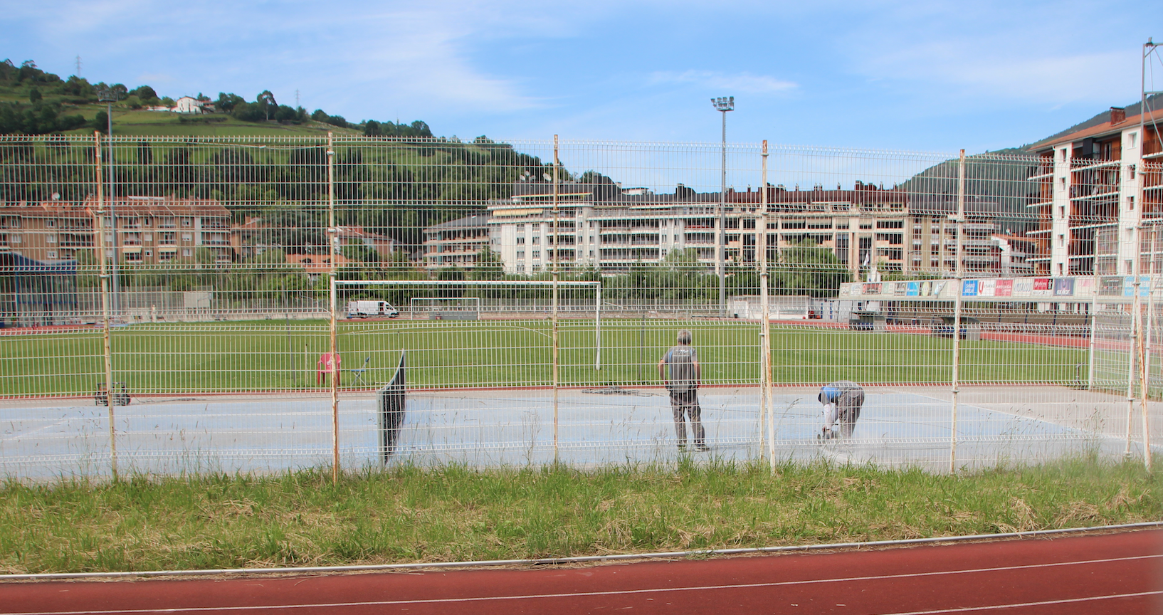 Berazubi estadioan dauden tenis pisten zorua aldatzeko lanak abiatu zituzten atzo. Bi pista konponduko dituzte: bata Paper kalearen alboan dagoena, eta bestea, ibaiaren aldekoa. Azken horren alboan saskibaloian jokatzeko dagoen guneko zorua ere aldatuko dute.