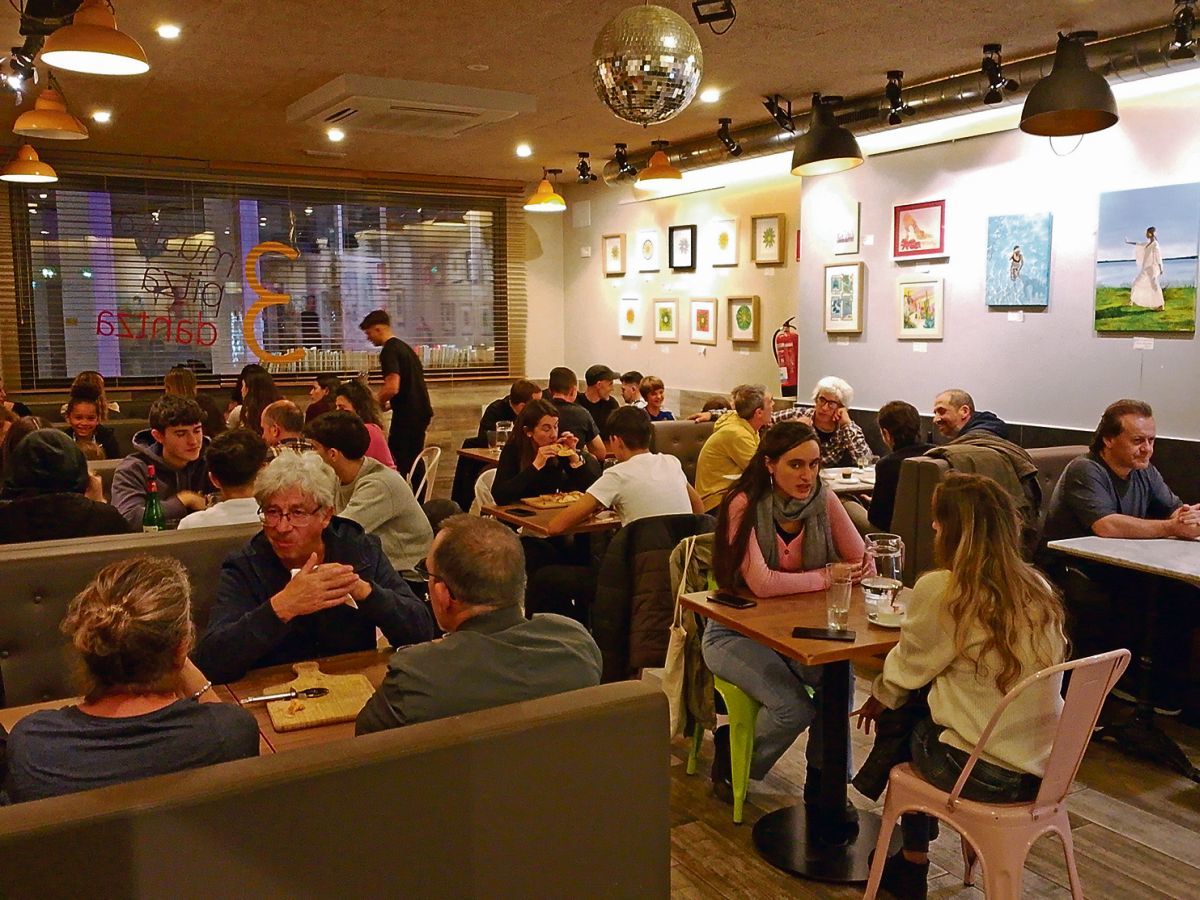 Larunbata eta igande eguerdietan ere zabalik izaten da, ordea, eta, orain, otordu horietako eskaintza indartuko dute. Orain arteko pizza, lasagna, saltxitxa, ukondo, haragi-bola, kroketa eta bestelakoei, euskal sukaldaritza tradizionalean ohikoak diren platerak gehituko dizkiete bazkaritan: txipiroiak tintan, mondejua, arkumea saltsan, zurrukutuna, bakailaoz betetako piperrak, saiheskia eta oilaskoa tenperatura baxuan erreak, postretarako pantxineta eta intxaur saltsa... 27 euroan eskainiko dute eguerdiko menua, edaria, postrea eta kafea barne.