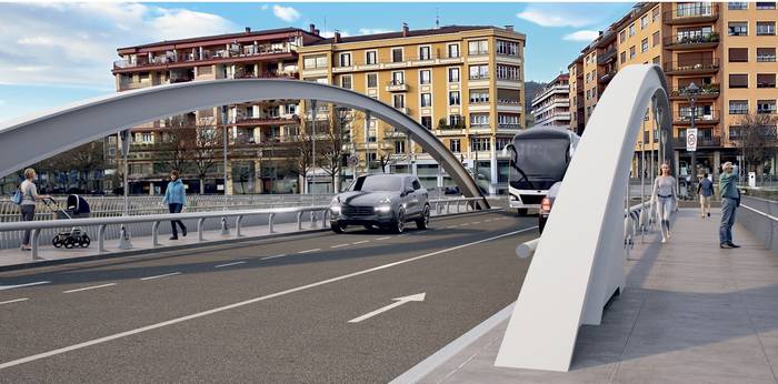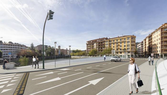 Zubiaren egungo errei kopuruari eusten dio, eta galtzadaren zabalera hiru erreien artean berdin banatzen du, bakoitzak 2,80 metro. Zubiaren alboetan, ibilgailuen eta oinezkoen arteko hesi fisiko gisa funtzionatzen duten habe nagusien bidez banatuta, 2,40 m-ko bi espaloi zabal daude. Forma kurbatua duen estetika oinezkoaren ikus-eremuaren azpitik gelditzen da. Gauez ere integratuta gera dadin, lurreko fokuekin argiztatzea proposatu dute.