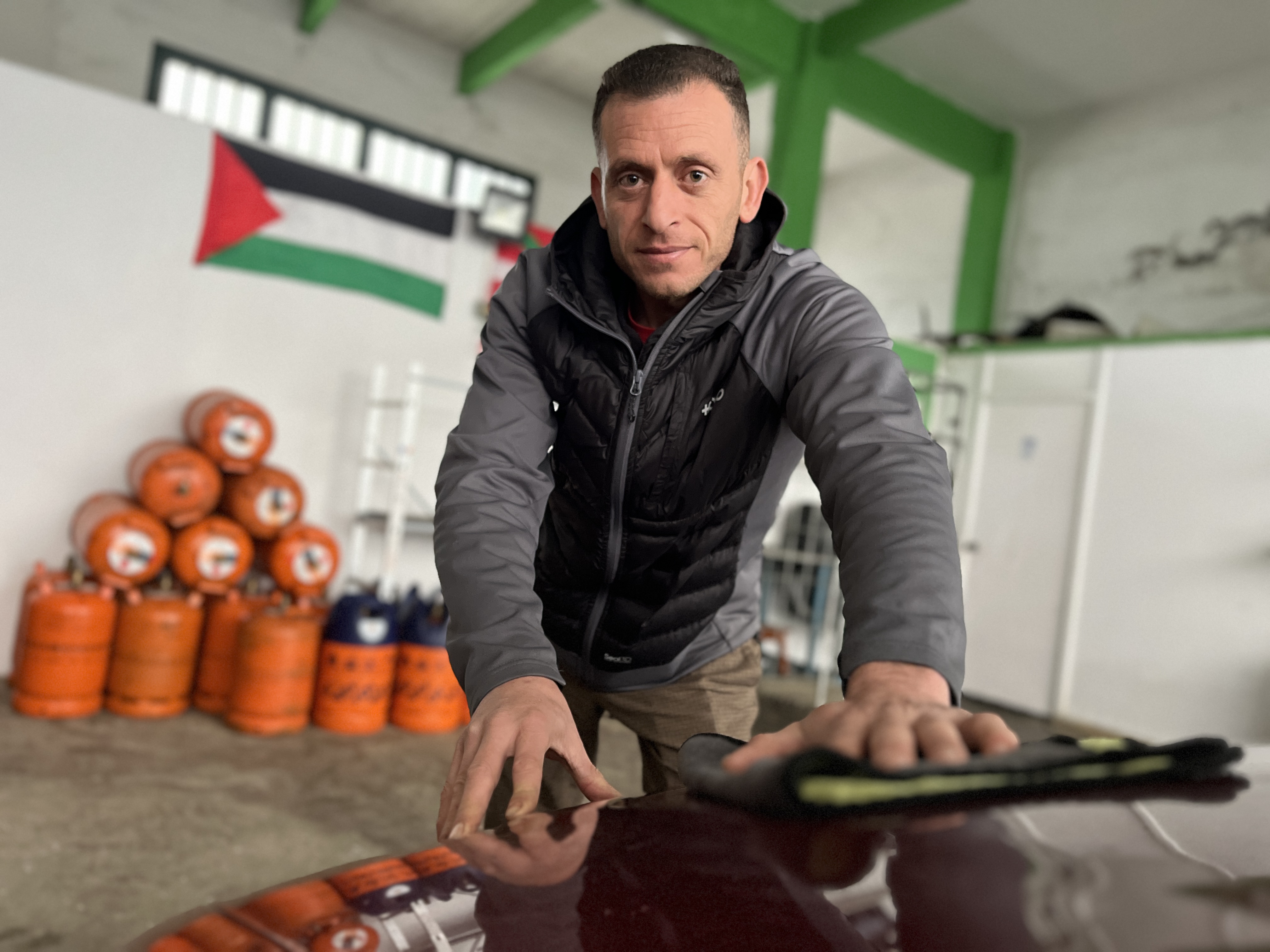 Lan askotan aritu izan naiz, eta han Zisjordanian, nagusiki, autobus gidaria eta baita taxilaria izan nintzen; Palestinako Aginte Nazionalaren poliziarentzat lan egin izan nuen. Gure familiak autoak garbitzeko negozioa du Nablusen. Aitak erretiroa hartu zuen duela zazpi urte eta nire anai bakarrak segitzen du han lanean. Palestinan bizi izan nintzen artean lagundu izan nien autoak garbitzeko gunean.