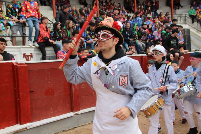 Martinez: Gainera, haur askok abesti bakarra ikasita parte hartzen du Pintxanarekin. Gurea ez da txaranga profesionala. Instrumentu bat jotzen dakien eta inauterietako abestiak etxean errepasatu dituen edonork du eskubidea gurekin kalera ateratzeko. Haur gehienek perkusioa jotzen dute lehen urteetan, eta, urte batzuk aurrerago, haizezko instrumentuekin animatzen dira.