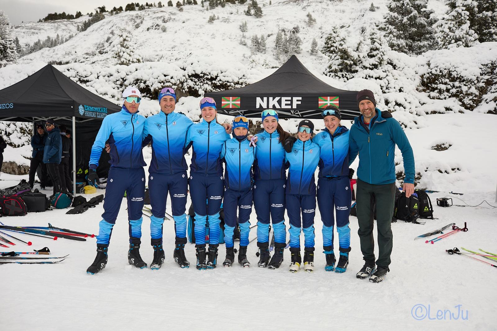 Taldean bost eskiatzaile daude: June Aranburu, Magali Lekue, Libe Curras, Inge Arin eta Iker Aranburu, eta entrenatzailea Alaia Juaristi da. Horiez gain, master kategoriko Igor Aranburu berak eta Harkaitz Labeagak lehiatzen dute. «Emaitza politak izaten ari dira, kontuan izanik elurra 200 kilometrotara dugula, eta dauzkagun zailtasunak ikusita», esan du Aranburuk. «Tolosan iraupen eskiaren tradizio hori daukagu, eta beti ateratzen da gazte bat edo beste emaitza onak ematen dituenak. Alde horretatik oso gustura eta oso harro nago». Aurkariak Pirinioetatik gertu bizi diren eskiatzaileak direla ekarri du gogora: «Askoz errazago dute, eta gainera kopuruz gehiago dira».
