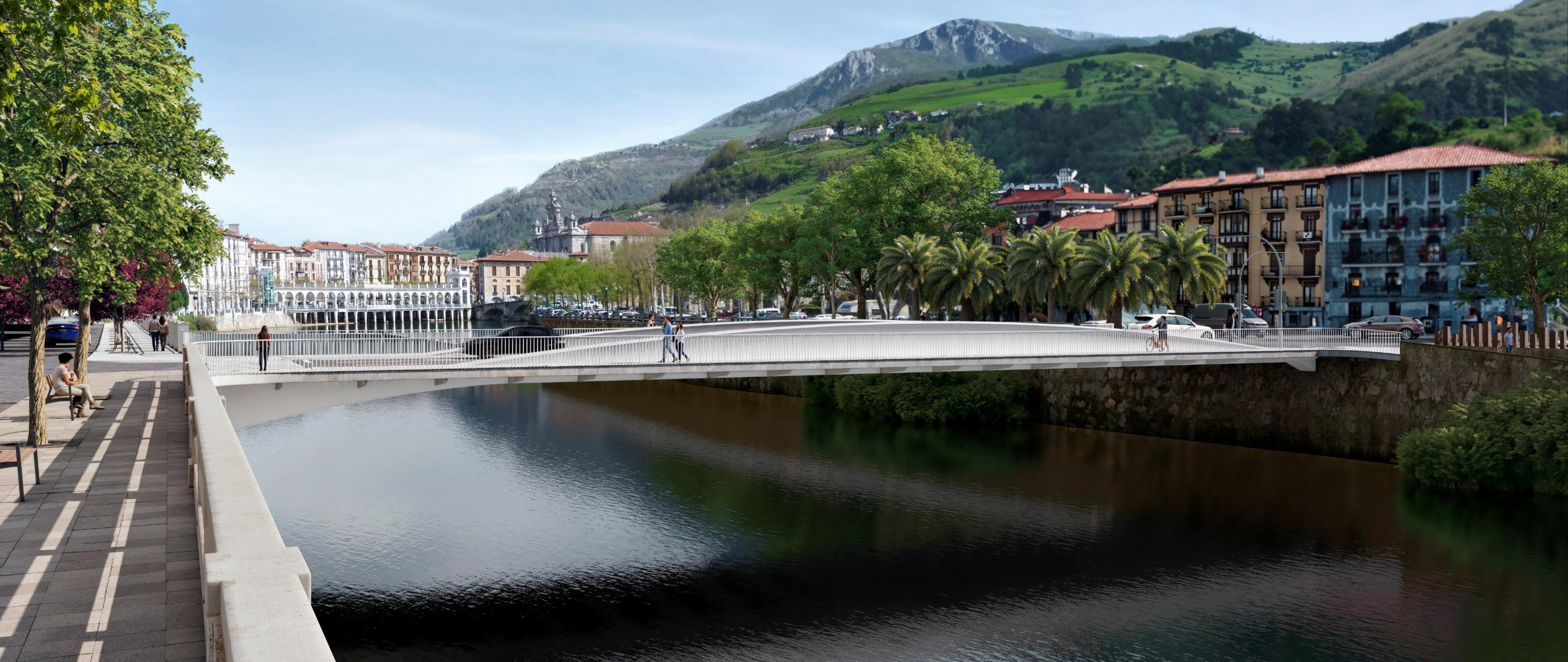 Zutaberik gabeko zubi bat proposatzen du enpresak, bao bakarrekoa. Era berean, galtzadaren gainetik egitura bat du, ahalmen hidrauliko handiena lortzeko, eta, horrela, uholde-arriskua murrizteko. Altxaeran dauden bi habe kurbatu nagusitan oinarritzen da, arrain-silueta baten antzekoa. Zubia inguruko paisaian integratzen da, eta konponbidea ematen zaio ezkerraldeko espazio faltari.