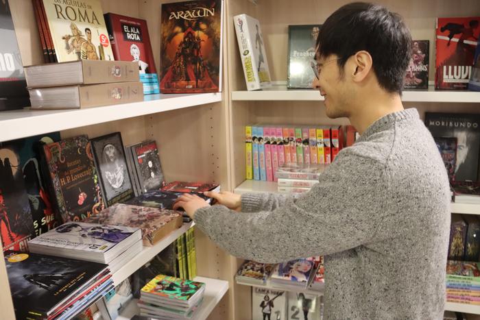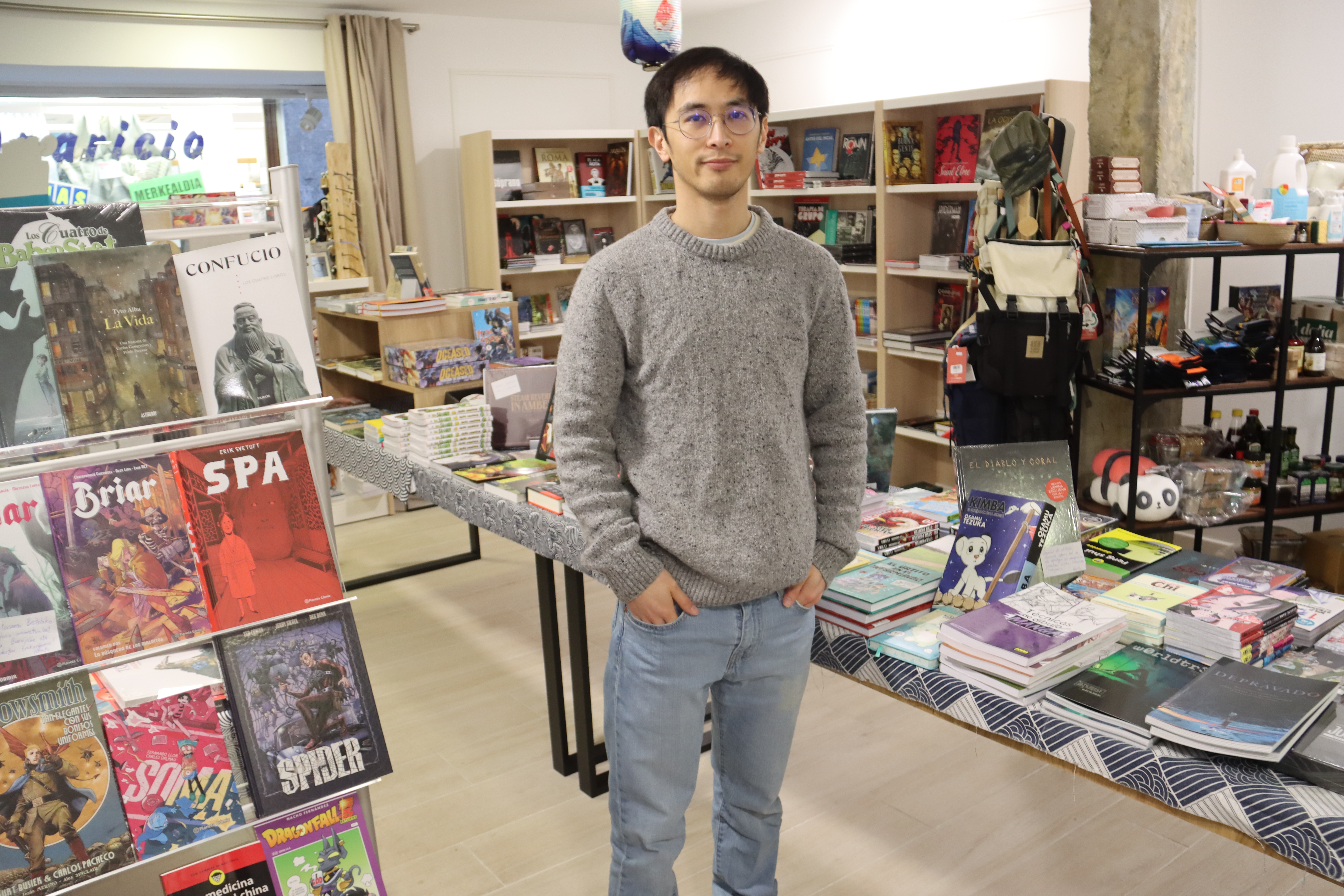 Mangak ditut, bestelako komikiak, umeentzako ipuinak, eta horrez gain opariak, panpinak, jolasak, mahai jokoak, motxilak... Bestalde, janari asiarrak daude, normalean beste dendetan ikusten ez direnak. Saiatzen naiz gauza ezberdinak izaten.