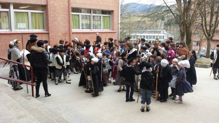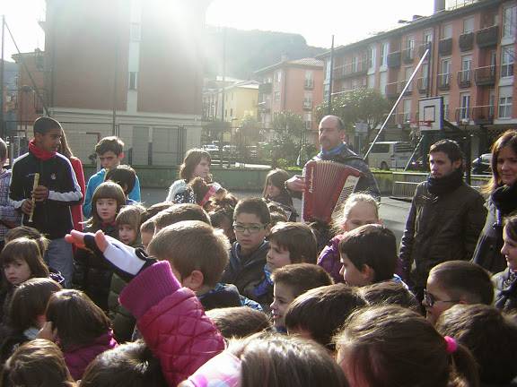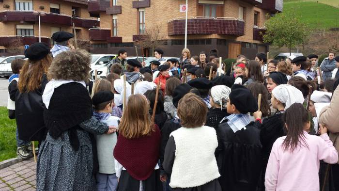 Alegiako San Juan eskolan, Villabonako Fleming ikastetxean, Albizturren eta Zizurkilen goizean atera dira kantari.