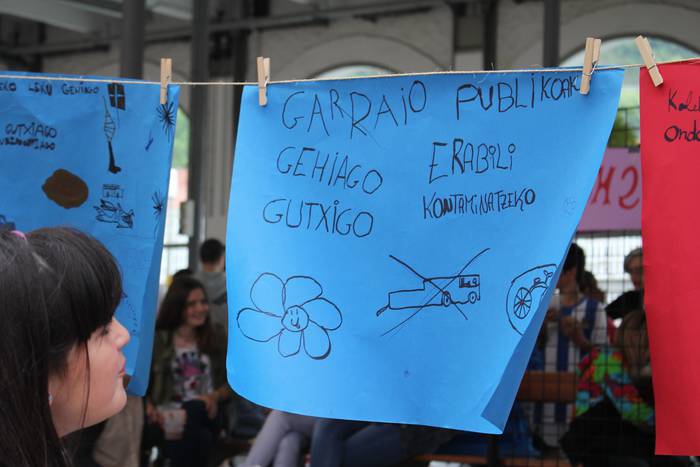 Tolosako Zerkausian egin dute topaketa, eta mailaka banatu ostean, gai ezberdinak jorratu dituzte tailerretan. Txikienek, adibidez, jolasen bidez mugikortasuna landu dute. Beste batzuk zirkuitu bati bueltak ematen ibili dira, begiak tapatuta, ikusi ezin duen pertsona baten sentsazioa ezagutzeko. Zaharrenek, berriz, petrolioaren menpekotasunaz hitz egin dute. Horretarako Fracking Ez! plataformako kideen hitzaldia izan dute.