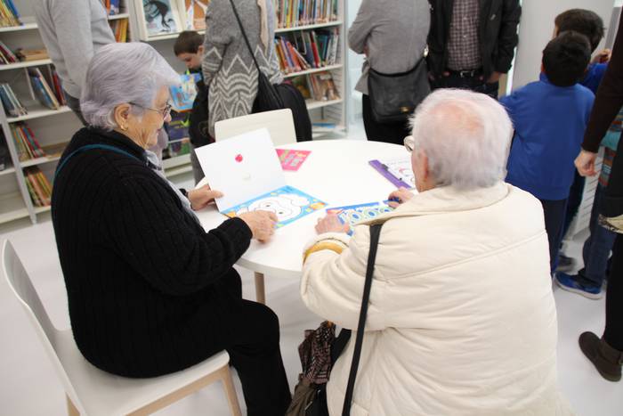 Ilusioz sartu dira haur, gazte eta helduak. "Zeinen polita geratu den", esan dio 80 urte pasatxoko emakume batek bere lagunari, hark buruarekin baiezkoa egiten zuen bitartean. Gaztetxoak liluratuta ibili dira, hara eta hona, apalak arakatuz eta liburuak irekiz. Gustatu ote zaien galdegindakoan, baiezko borobila erantzun dute guztiek, irribarrea ahoan zutela. Beste askok Maria Altuna herritarraren artelanekin gozatu dute.