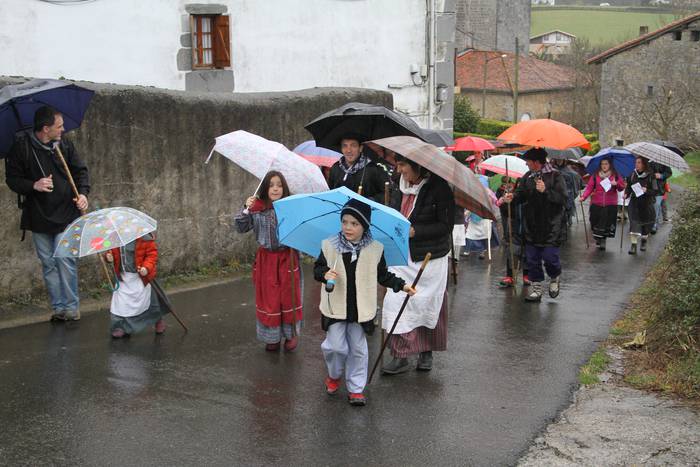 Anoetan, plazan elkartu ondoren baserrietara joan dira. Ondoren, herriko kaleetan barrena ibili dira, Sarasola sagardotegian amaitu eta afaltzeko.