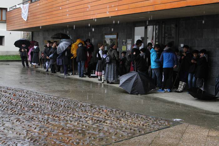 Adunan guraso elkarteak bigarrenez hartu du, aurten, Sahara Aduna elkarteak urtetan antolatutako Santa eskearen lekukoa. Horrela, haur, gazte nahiz helduk bat egin dute udaletxeko arkupean, baserriz baserri abiatu baino lehen entsegu azkar bat egiteko.