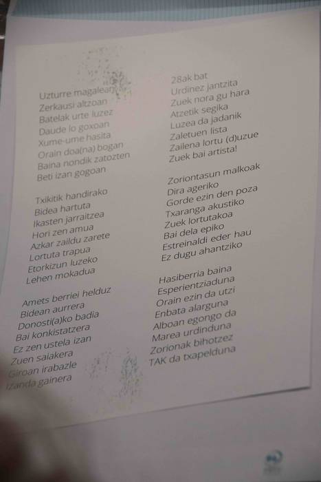 Lehenik, eskualdeko zenbait herritarrek zorionduz eta animoak emanez grabatutako mezuekin, bideo bat osatu zuten, arraunlariei eskainia. Ondoren, berriz, bakoitzari argazki bat oparitu zioten, hain justu, Pasaiako estropadakoa. Argazkiaren atzean, gainera, bertsoak zeuden idatzita, eta guztiek batera abestu zituzten gero. Kalean txaranga bertara joan ondoren, sekulako giroa jarri zuen, arraunlarien gozamenerako. Ondoren, berriz, kalera irten ziren, udaletxera heldu arte.