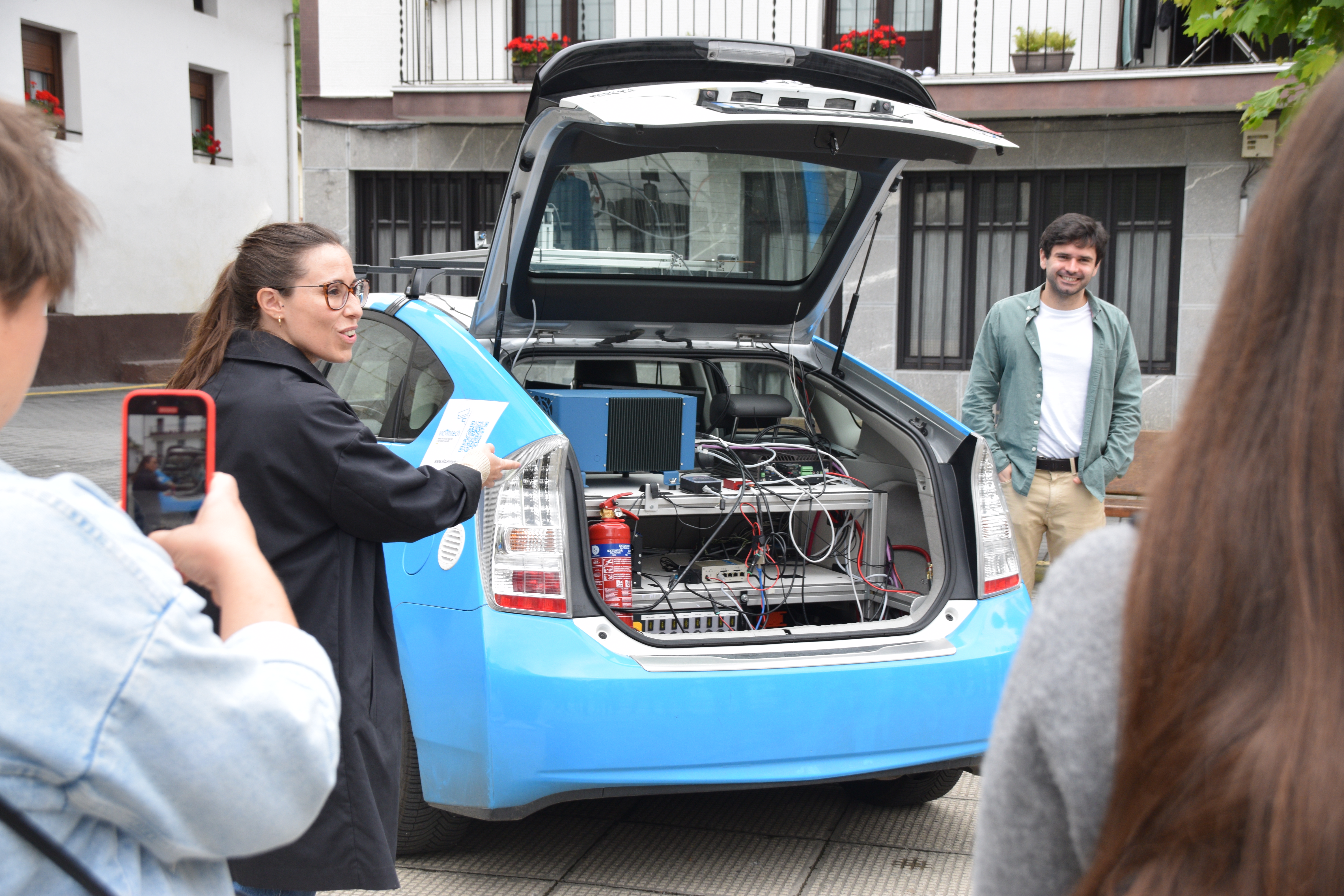 Atzo proiektua gizarteratzeko saioa egin zuten Amezketan, eta jakin-minez gerturatu ziren zenbait amezketar. Gerturatu, informazioa jaso, eta baita autoa probatu ere. Txandaka probatu zuten gidaririk gabeko ibilgailua —atzo, oraindik, giza gidari batekin batera «badaezpada»—.