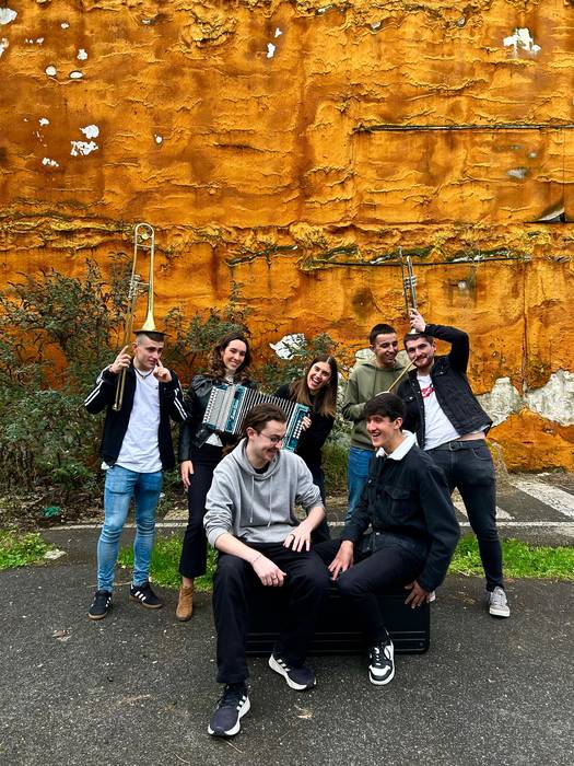 Indakoetxea: Taldekideetako bakoitza gainera, mundu jakin batetik dator. Ni eta Maitane, agian, trikiti-pandero mundu horretatik gatoz; Joxek, Aiertek eta Eñautek txaranga mundu hori ezagutzen dute; eta musika eskolan ikasi dute Egoitzek eta Alainek. Errepertorioa muntatzeko garaian abantaila da hori.