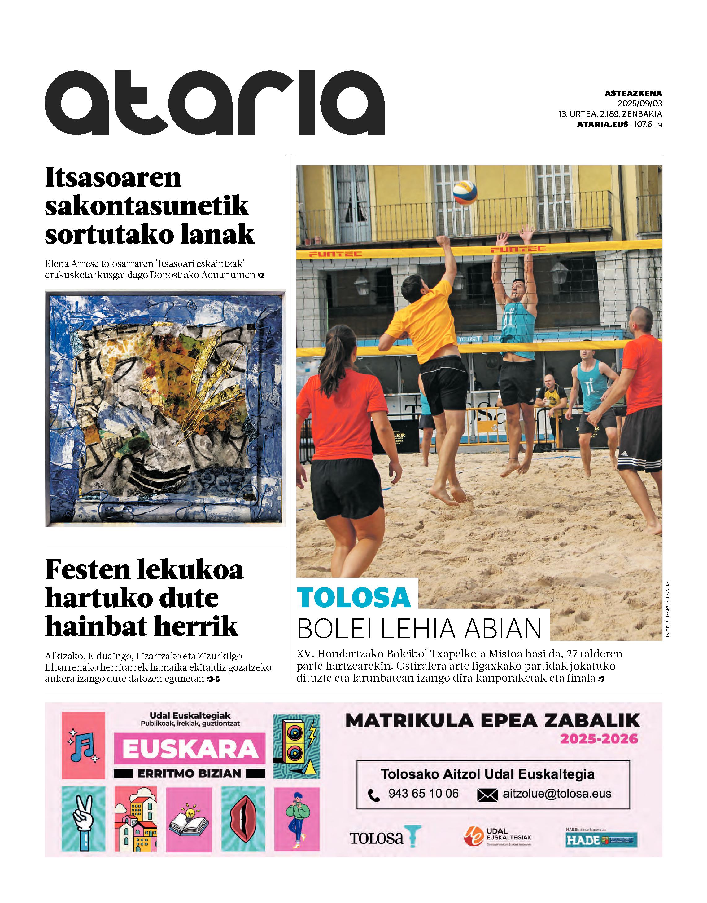Inpresio arazo bat dela eta gaurko egunkariko hainbat orritan 'Lea-Artibaiko Hitza' egunkariko albisteak argitaratu dira. Hemen duzue gaurko ale zuzenaren bertsio digitala. Barkatu eragozpenak.