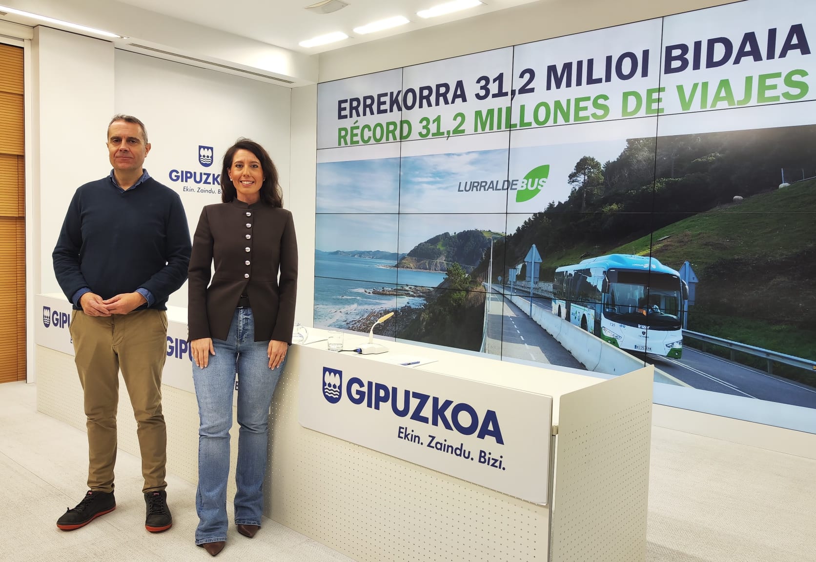 Azahara Dominguez Mugikortasuneko, Turismoko eta Lurralde Antolaketako diputatuak egin du Lurraldebuseko pasa den urteko balantzea, eta esan du zerbitzuak inoizko bidaia kopururik altuena izan zuela; guztira 31,2 milioi bidaia izan zituen, 2024an baino 2,4 milioi gehiago.