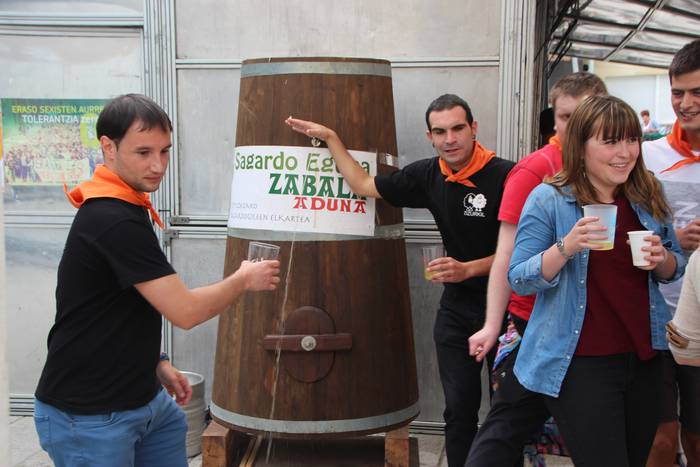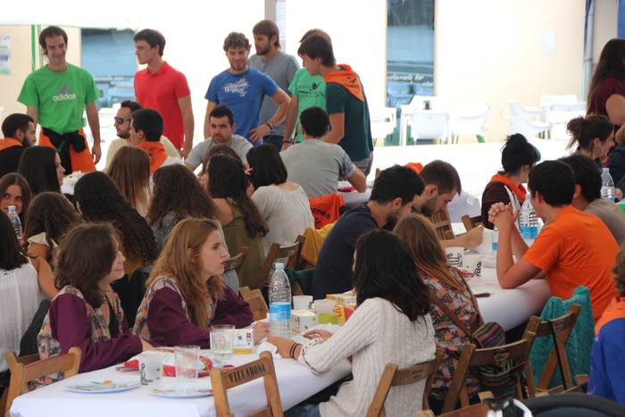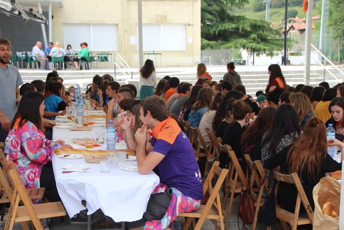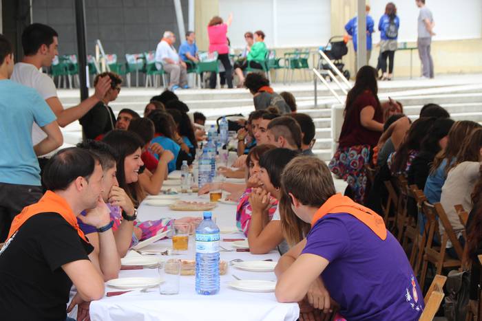 Zizurkilgo Gazte Egunean 90 pertsona bildu dira Joxe Arregi plazan bazkaltzeko. Bazkalostean bertso musikatuak izango dituzte