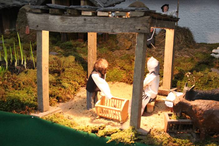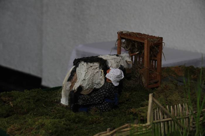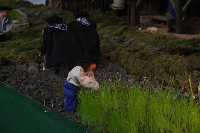 Euskal Herriarekin zerikusia duten gaiak hartzen ditu oinarritzat jaiotza egiteko: behiak jezten ari den emakumezkoa, meta egiten ari direnak, laiarekin soroan jarduten dutenak edo labaderoan arropa garbitzen ari den pertsonaia ageri dira jaiotzan. Baserria, Akezko errotaren kopia, garaia eta egiazko baratza ere baditu.