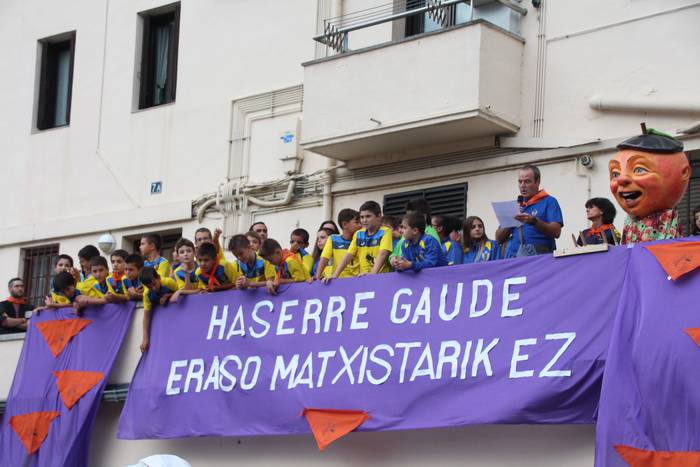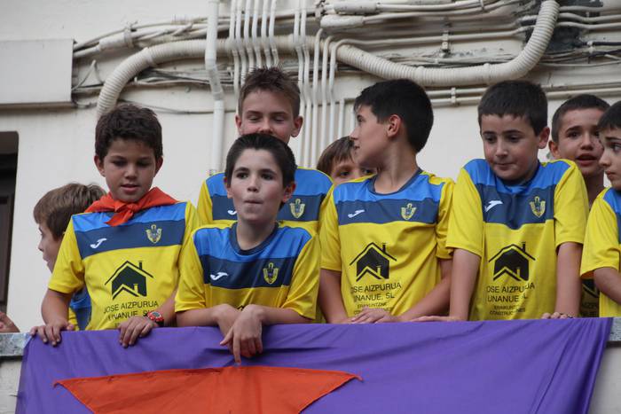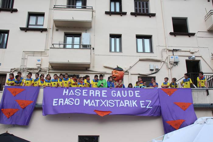 Atzo beroketa ariketak egin ondoren, gaur eman zaie hasiera ofizialki Elbarrenako festei. Arratsaldean buruhandiak atera dira plazara, danborrada herrikoia ibili da kalez kale eta Danena kirol elkartekoek bota dute suziria Pasuseko balkoitik.