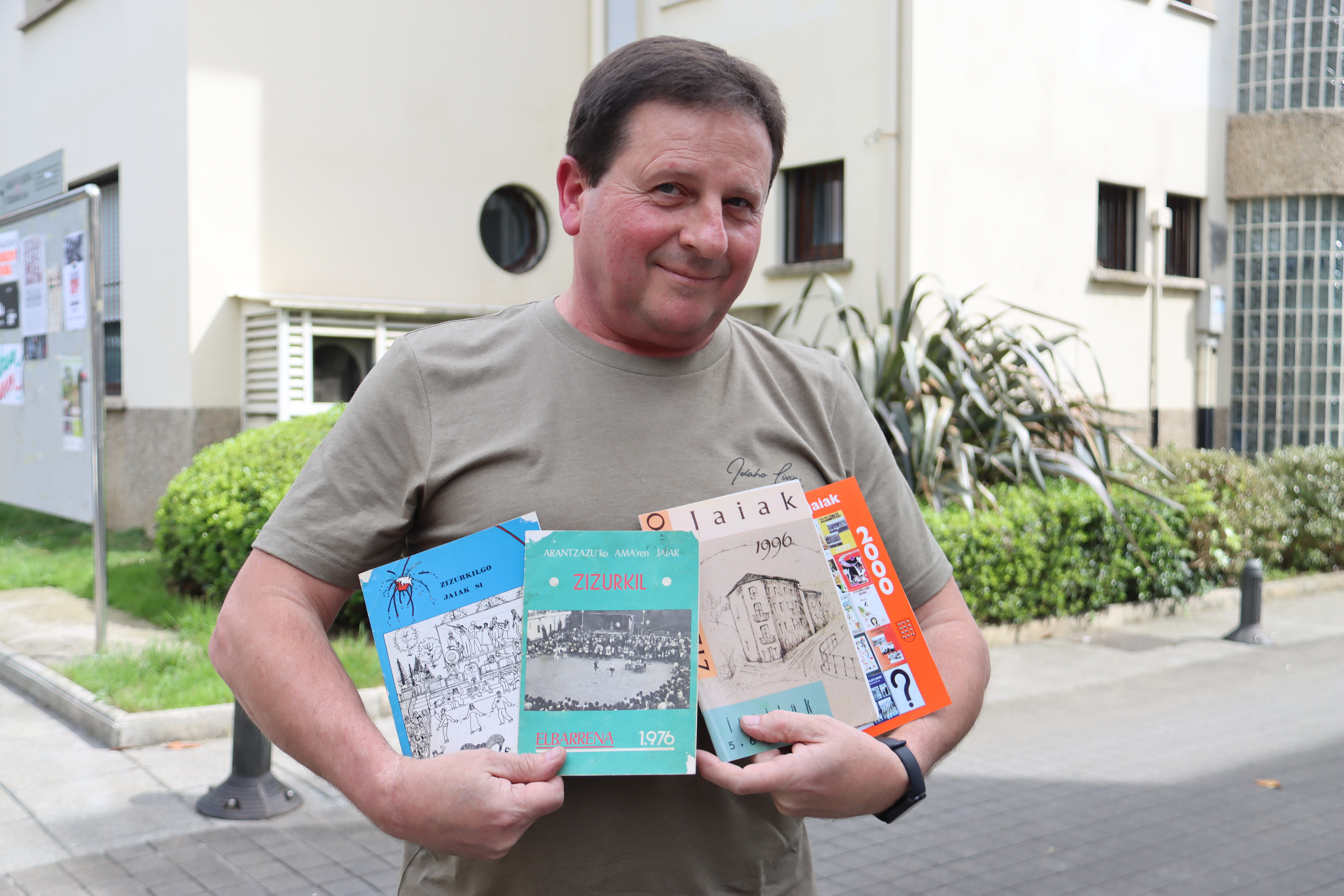 Villabonako Santio jaietan izeba baten etxean egiten genuen bazkaria eta halako batean izebaren senarrak Villabonako festetako jai egitarauen bilduma erakutsi zigun. Pilotaria zan, errebotean aritzen zen, Pako Etxenike, eta festetako programak biltzeko ohitura zuen Santio jaietan antolatzen ziren pilota partiden datuak gordetzeko; emaitzak, pilota taldeak, pilotariak eta abar. Bilduma hura erakutsi zigunean gustatu egin zitzaidan eta ni ere urte horretan nire herrikoak biltzen hasi nintzen. 1976. urtea zen, 11 urte nituen, eta gaur arte urtero urtero Elbarrenako jai egitarauak biltzen aritu naiz.