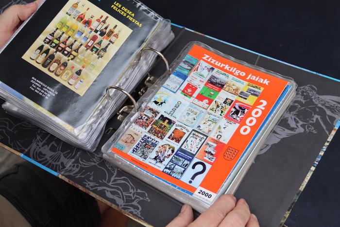 Plastikoak dituen eraztun-karpeta bat erosi nuen, eta egitarau bakoitza plastiko batean gordetzen dut. Txukun ordenatuta dauzkat, bakoitzaren urtea zehaztuz.