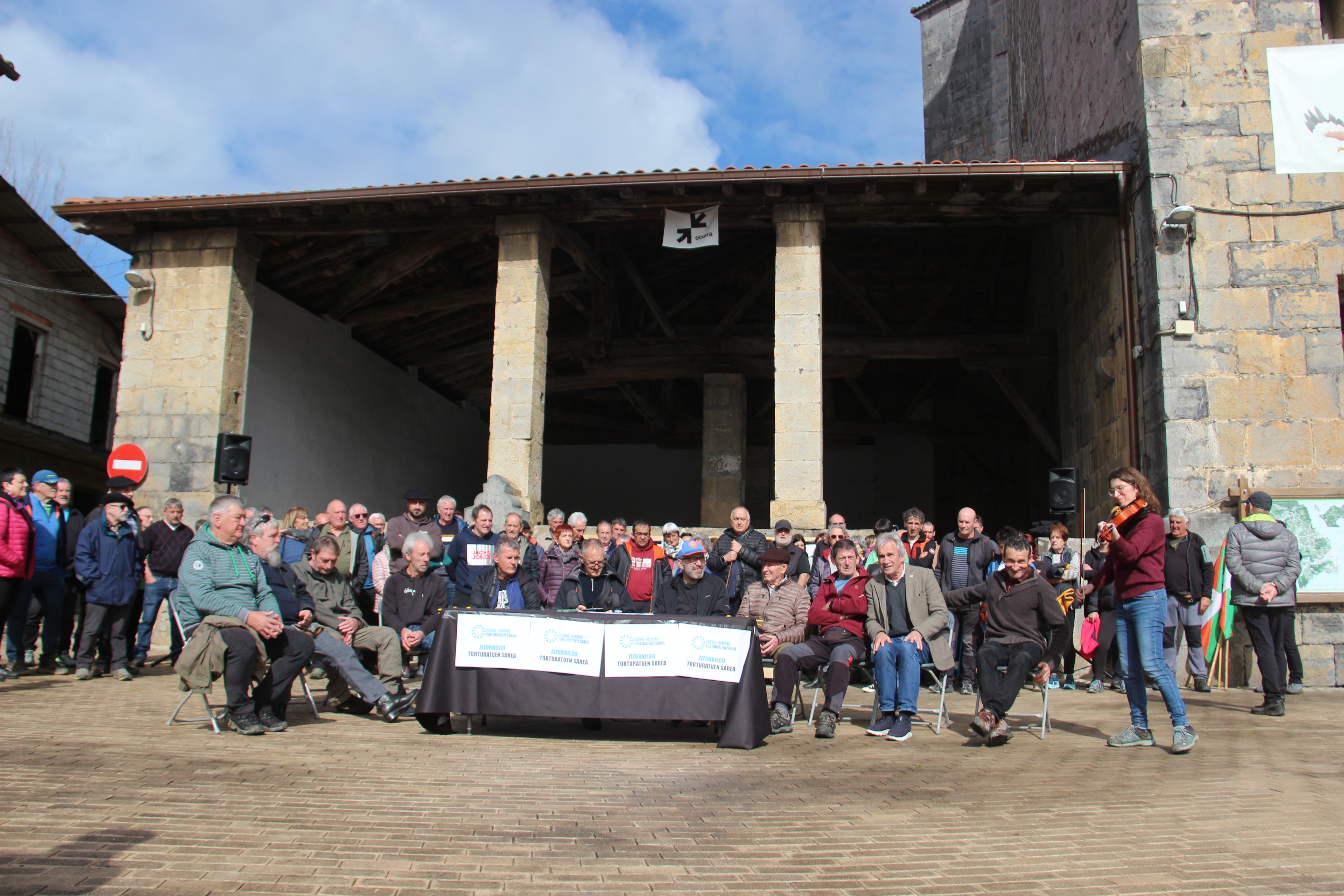 Pedro Mari Otaño plazan eta herri memoria taldeak antolatutako Hegiatik Egiara egitarauaren barruan aurkeztu dute gaur Zizurkilgo torturatuen sarea. Argazki jendetsuarekin irudikatu nahi izan dute gorpuzten ari dela sarea, eta urtetan isilarazi nahi izan duten torturaren errealitatea existitu existitzen dela.